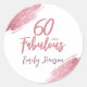 60 and Fabulous Pink Glitter 60th Birthday Classic Round Sticker