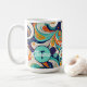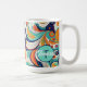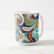This 60s inspired swirls abstract design brings a modern twist to the dynamic hippie-era style with it's playful shapes and bold palette of turquoise, golden yellow, navy blue. The colourful composition captures the essence of modern psychedelic patterns. This coffee mug design can be easily personalised to suit your unique style using the supplied template. Try out Zazzle's handy transfer option or search ID1069 to see additional patterns and products in this design set. Note: pattern adapted from generative content.