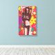 A cool themed retro pop art print featuring a 60s / 70s theme with a flower child against a flowery colourful brightly coloured background. Perfect for your vintage retro decor or hippy psychedelic style room.