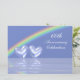 60th diamond anniversary invitation with a rainbow in a light blue sky and two shiny diamond hearts floating on the water. Customise the sample text on the back with your own information for your event.