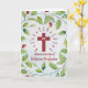 Celebrate the blessed journey of a devoted Catholic nun with this exquisite anniversary card. Adorned with a delicate watercolor wreath of lush green leaves and vibrant red berries, it captures the beauty of faith's growth. At its heart lies a radiant cross embraced by gentle rays, symbolising the sister's unwavering devotion. Set against a serene backdrop of light blue and white watercolor wash, this card is a heartfelt tribute to her profound commitment and a joyous congratulations on her 60th religious profession anniversary.