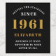 A personalised classic label design for that birthday celebration for a special woman born in 1961 and turning 60. Add the name to this vintage retro style black, white and gold design for a custom 60th birthday gift. Easily edit the name and year with the template provided. A wonderful custom black birthday gift. More gifts and party supplies for that 60th party celebration available in the store.