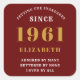 A personalised classic sticker design for that birthday celebration for a special woman born in 1961 and turning 60. Add the name to this vintage retro style red, white and gold design for a custom 60th birthday gift. Easily edit the name and year with the template provided. A wonderful custom birthday gift. More gifts and party supplies for that 60th party celebration available in the store.