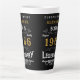 For those born in 1966 and celebrating their 60th birthday we have the ideal birthday latte mug. The black background with a white and gold vintage typography design design is simple and yet elegant with a retro feel. Easily customize the text of this birthday gift using the template provided. More gifts and party supplies available with the "Legendary" design in the store.