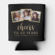 This custom 60th birthday can cooler features a collage of three custom square photos above the phrase "Cheers to 60 years" in elegant gold-coloured calligraphy script and sans serif font on a black background. Add the guest of honour's name and birthday below. A great way to celebrate someone who's turning sixty!