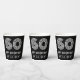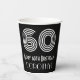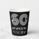 This Roaring Twenties inspired and vintage style birthday themed paper cup design features a large art deco inspired style number “60”, along with the birthday greeting message “Happy 60th Birthday,” and a personalised name. The background is coloured black. Birthday themed paper cups like this might be used at a birthday party celebrating somebody’s 60th birthday. [~Z0000542]