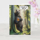 A bear stands leisurely against a tree holding a mug of beer with one paw in a sunlit summer forest with a humourous speech bubble for a 60th birthday.