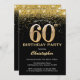 60th Birthday Black and Gold Glitter Confetti Invitation