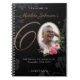 60th Birthday Black Gold Floral Photo Guestbook notebook. A delicate and feminine floral and botanical themed birthday party guestbook. It features beautiful flowers surrounding the photo of the birthday person all with a hint of vintage classiness! Need help with this design? Send the designer a message by clicking on the blue message button below!