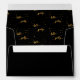 Outside: black background colour. Back: template for a name and address. Inside: Black background and faux gold text written with a trendy hand-lettered style script: hello sixty. With golden dots as decor. A simple and trendy envelope for your 60th birthday party invitations, save the dates or thank you cards,