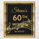 A wine or sparkling wine bottle label for an elegant black and gold themed 60th birthday party. Templates for a name, age, and date of the party. Golden coloured letters. Black background colour and a faux gold frame and golden music notes. You can change the background colour to match your theme. Click customise and then "select a background colour" on your right.