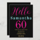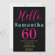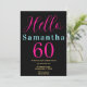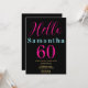 This is a modern and stylish 60th birthday party invitation. This chic design is in bright hot pink, blue and gold coloured typography and a black background. It is a personalised design, with the text, "Hello 60", and space you to add your name and party details. A smaller version of the personalised, "Hello 60" typography party logo, is repeated on the back, along with main party details (name, age, and celebration date). This stylish design is perfect for an elegant and unforgettable 60th birthday party celebration. To personalise, simply add your name, date, party venue and RSVP information in the personalise this text box. To change the colour or font, check out the design editing tool. If you need help with personalisation, matching products, or for a custom design contact me via zazzle chat.