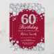 60th Birthday Burgundy Red and Silver Diamond Invitation