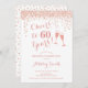 60th Birthday Invitation. Cheers To 60 Years! Elegant design in white and rose gold. Features champagne glasses, script font and confetti. Perfect for a stylish sixtieth birthday party. Personalise with your own details. Can be customised to show any age.