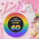 60th Birthday: Colourful Rainbow # 60, Custom Name Paper Plate