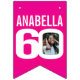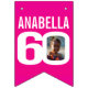 60th bright pink and white add your own three photos birthday bunting flags. Personalise with your own honouring name and three photos in the 0 of 60. Uniquely design by Sarah Trett for www.mylittleeden.com