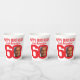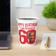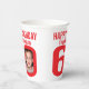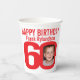 Personalise these bright red and white 60th birthday party paper cups with your own birthday name and two photograph in the 0 of 60. Fun text and personalised photo design. Ideal for using at a sixtieth birthday party to show a photo of your birthday boy or girl now and one from their past. Other matching items are available. © Original graphic art and design by www.mylittleeden.com