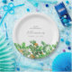 Perfect table decor for a December birthday party. Holly is the birth flower for that month. It forms a pretty watercolor bottom border on this festive personalised round paper plate. The birthday celebrant's name, age and birthdate are placed above it using elegant calligraphy and typography. All text is editable.