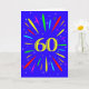 An explosive 60th birthday card! What a wonderful way to send birthday greetings. The number 60 in bright yellow with an explosion of bright colours and stars.