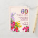 Celebrate a milestone birthday with this beautifully designed 60th birthday thank you card, featuring vibrant floral accents and an elegant "60" graphic. This card offers a heartfelt way to express gratitude to friends and family for their presence and generous gifts on this special occasion. The floral border adds charm, while the customisable text ensures a personal touch. Ideal for those who want a memorable and elegant way to say "thank you" after a 60th birthday celebration. Enjoy!