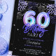 60th Birthday for Him Blue Fireworks Foil Balloon Invitation