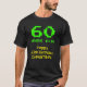 This geeky and silly shirt design features the message "60 YEARS OLD!", the birthday greeting message "Happy 60th Birthday,", and a personalised name. The upper age digits and text feature a nerdy, green, pixelated, 8-bit graphics style look inspired by that of old-school computer games and vintage video games. The lower greeting message has a geeky, yellow, vintage digital computing inspired appearance. Shirts like this might be worn by the attendees at a birthday party being held to celebrate the 60th birthday of somebody who enjoys vintage video gaming or old computers. [~Z0000455]