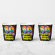 This fun and cheerful birthday-themed paper cup design features a large number “60” with a rainbow spectrum gradient inspired pattern, along with the message “Happy 60th Birthday,”, and a customisable name. The background features a colourful pattern inspired by the look of bursting celebratory fireworks. Colourful, vibrant paper cups like this might be fun to have at a birthday celebration/party being held to honour somebody’s sixtieth birthday. [~Z0000539]