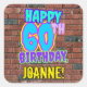 This fun birthday themed square sticker design features the message “HAPPY 60TH BIRTHDAY,” having a vibrant, colourful, graffiti-inspired look, along with a personalised recipient name. The background features a brick wall inspired pattern. Fun, personalised stickers like this might be given as a birthday gift, or used while wrapping gifts/presents, or perhaps used as a birthday party decoration when celebrating somebody’s 60th birthday. [~Z0000535]