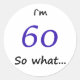 60th Birthday Funny I`m 60 so what Classic Round Sticker