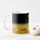 Elegant, classic, glamourous and feminine. A gold coloured ribbon and bow with golden glitter and sparkle, a bit of bling and everyday luxury. Black background. The Perfect gift for a 60th birthday! Templates for a name, age 60 and date of birth and the anniversary date. Golden letters. The name is written with a modern hand lettered style script.
