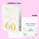 You know she is fabulous so why not let her know on her 60th birthday. This great 60th birthday card features beautiful gold foil on the front. You can customise the card with her name after which appears the words "you are Fabulous at 60". Fun gold confetti appears on the front and black confetti appears on the inside along with the words "Nobody sparkles like you do! Happy Birthday". Copyright Kathy Henis