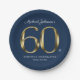 60th Birthday Gold Typography Navy Blue Custom Paper Plate