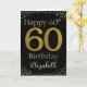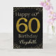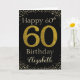 Happy Birthday with simulated golden glitter number 60 set on solid black and framed by faux diamonds and rhinestones. Happy birthday and recipients name in off-white font. Personalize with name or message.