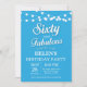60th Birthday Invitation with String Lights Blue Background. Woman Birthday Party. Sixty and Fabulous. Any age. For further customisation, please click the "Customise it" button and use our design tool to modify this template.