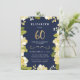 This elegant and classy sixtieth birthday invitation features an illustrated floral border and the number "60" in gold. The background is a navy blue colour, but can be customised to any colour you choose. The back of the invite includes a gold quatrefoil pattern with a matching navy background that can also be swapped out. The text is customisable for your special milestone birthday celebration event.