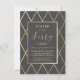 This elegant and trendy 60th birthday celebration invitation can be customised for your special occasion. It features a gold frame and gold background geometric lines. The word "Sixty" is in a stylish script font. The background colour and text can be changed to your liking. A perfect invite for an adult's milestone birthday.