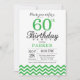 60th Birthday Invitation with Green Chevron. Black and White. Adult Birthday. Man or Women Bday Invite. For further customisation, please click the "Customise it" button and use our design tool to modify this template.