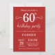 60th Birthday Invitation with Red Background. Adult Birthday. Men or Women Bday Invite. 13th 15th 16th 18th 20th 21st 30th 40th 50th 60th 70th 80th 90th 100th, Any age. For further customisation, please click the "Customise it" button and use our design tool to modify this template.