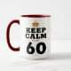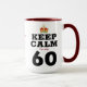 A fun birthday mug based on the "Keep Calm and Carry On" idea . 60th birthday celebration milestone gift. Easy to add your personalized message opposite the handle to make this "Keep Calm" Mug special.