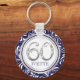 60th Birthday Key Chain-Navy Blue & Silver Ring