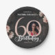 60th Birthday Moody Floral Pink Custom Photo Paper Plate