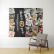 Modern 60th birthday backdrop featuring a stylish black background that can be changed to any colour, a 20 photo collage template of through the years, the saying 'cheers to 60 years', their name, and the date.