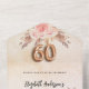 A rustic rose gold and blush pink gradient backround decorated with blush pink florals and pampas grass. Personalise and add your name, and the details. Black coloured letters. Number 60 is written with a rose gold balloons style font.