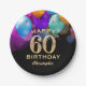 60th Birthday Party Black and Gold Colourful Balloons and Confetti Paper Plates. For further customisation, please click the "Customise it" button and use our design tool to modify this template.