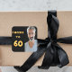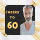 A trendy 60th birthday party sticker. With the text: Cheers to 60 on front written with faux gold balloon letters. Black background. Template for your photo.