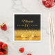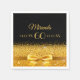 Elegant, classic, glamourous and feminine style napkin for a 60th birthday party. A gold coloured ribbon and bow with faux golden glitter and sparkle, a bit of bling and luxury. Black background. Templates for name, age 60 and dates. Date of birth and date of the anniversary or party date.