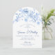 60th Birthday Party Blue Floral Arch Shape Invitation
