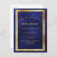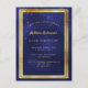 A trendy, modern 60th birthday party invitation card for men, guys, male. A dark blue, navy blue background. The blue colour is uneven. With a faux gold frame and golden confetti sprinkle, golden coloured letters. Templates for your party information.