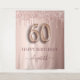 A tapestry for a girly and glamourous 60th birthday party. A rose gold, pink gradient background with elegant rose gold coloured faux glitter drips, paint dripping look. With the text: Happy Birthday. Personalise and add a name. The name is written in dark rose gold with a modern hand lettered style script with swashes. Number 60 is written with a trendy balloon style font. To keep the swashes only delete the sample name, leave the spaces or emoji's in front and after the name. Can be used as a welcome banner, wall decor for the party or as a photo booth backdrop.