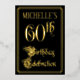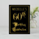 The front of this elegant, luxurious, foil sixtieth birthday celebration/party invitation design features the message “60th Birthday Celebration” in ornate script-style text. It also has a custom name. The background of the front is coloured black by default (although it can be customised to a different colour). The back features personalised details about the event, such as the date, time, location, and any other information that may be relevant. Ornate, fancy, personalised invitations like these might be used to invite guests to a birthday party being held to honour somebody’s sixtieth birthday. [~Z0000589]